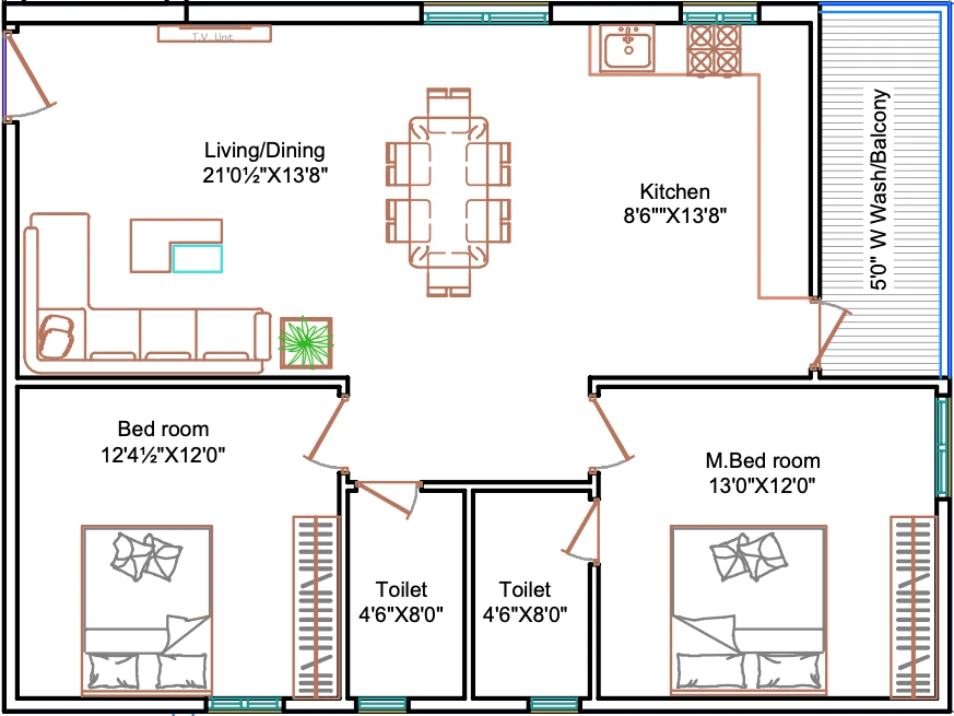 2-BHK 1235-1240 SFT